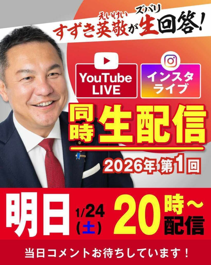 明日1月24日(土)20時から、Youtube・Instagramで同時生配信します。