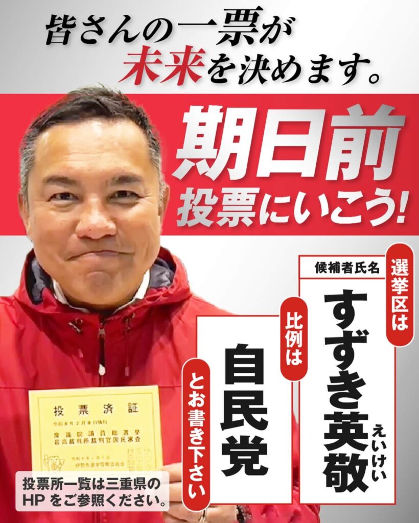期日前投票は 本日2/7までです!!皆さんの一票が未来を決めます。投票券がなくても身分証があれば投票できます。今日、皆さんの意思を届けてください!