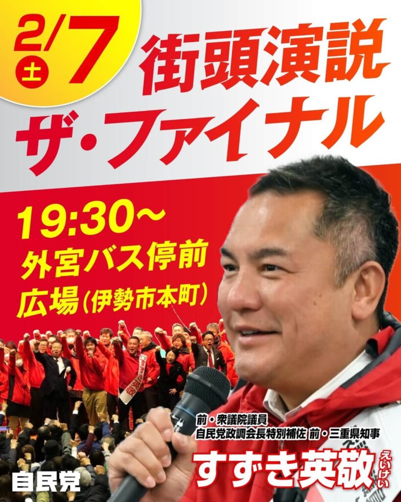 本日 2月7日(土)19:30〜外宮バス停前広場(伊勢市本町)