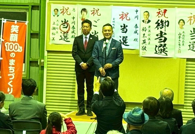 玉城町長選、応援させていただいていた「#中川やすなり」さんが当選。64票差の大激戦を制し、見事、町政の舵取りのスタートラインに立たれました。最後の最後まで一瞬も緩むことなく、仲間の皆様と駆け抜けてつかんだ勝利。心からお祝いを申し上げます。私も何度も応援演説等に入らせていただきましたので、心から嬉しく思います。中川新町長の大活躍を期待します