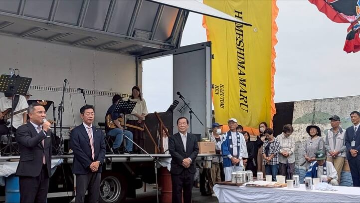 12日、志摩市議選挙では多くの同志の方が当選されました。心からお祝い申し上げます。12日午後は伊勢市。愛知県の知多地方の篠島から鯛を神宮に奉納する漁師の皆様を歓迎する神社地区の「御幣鯛船歓送迎式典」へ。鈴木健一伊勢市長、中川正美県議とともに。神宮様のご縁で両地区が海をはさんでつながっています。伊勢音頭での歓迎や餅まきなど。最後はみんなでお見送りでした。