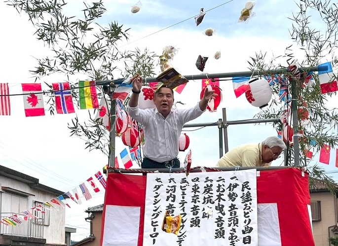 午後は、伊勢市内で、大湊町秋祭りでご挨拶と餅まき、馬瀬町秋祭りでご挨拶と餅まき、今年50周年を迎えた千寿台の秋祭りでご挨拶と乾杯の音頭、前山町の会式では役員の皆様へのご挨拶、などたくさんの皆様と交流させていただきました。