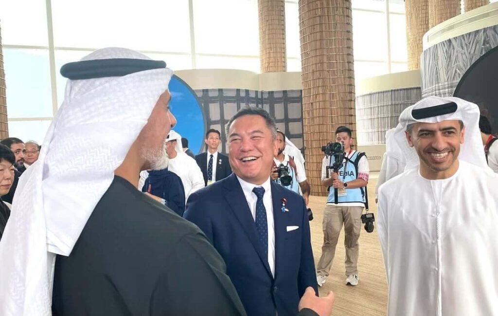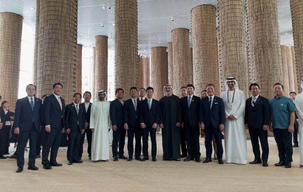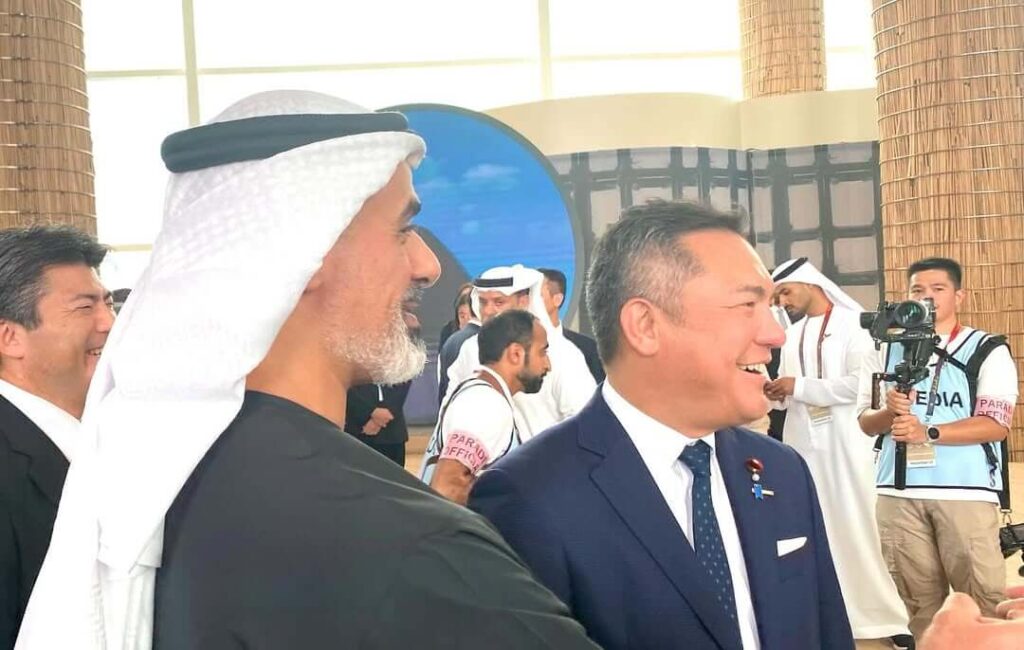 19日、公務で大阪・関西万博へ。3年前に安倍元総理の国葬儀に出席してくださったハーリド皇太子(黒い服の方)をお迎えしてのUAE(アラブ首長国連邦)のナショナルデーの公式行事等に、超党派による日UAE友好議員連盟の事務局長として、参加可能であったメンバーとともに出席。