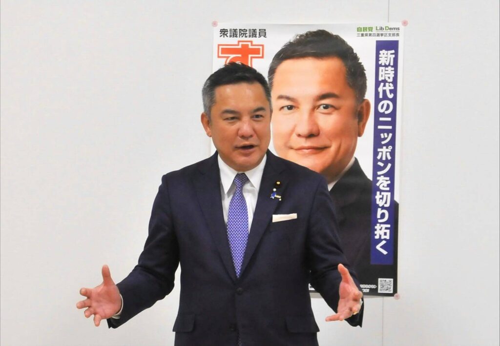 この日は、中部地区の市町村長が集まる中部国道協会促進大会に出席。隣は、同じ三重県選出の中川康洋衆議院議員。