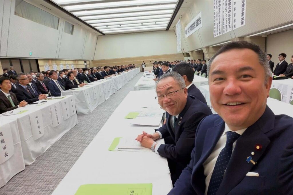 昼には、全石連主催の決起大会に出席。ガソリン税暫定税率廃止において現場でご努力いただくガソリンスタンドの皆様の団体で、ご協力に感謝申し上げる次第です。地域のガソリンスタンドが経営悪化により廃業などにならないよう支援をしっかりしたいと思います。