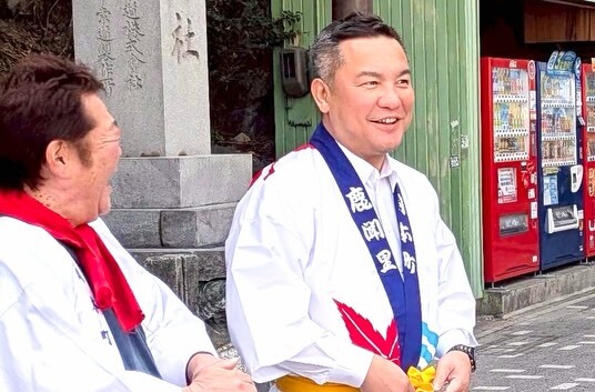 街頭活動にも橋爪志摩市長がお越しいただきました。昨年の世界相撲選手権大会に日本代表として出場し、個人戦と団体戦で金メダルを獲得した竹内宏晟さんも駆けつけてくれました。
