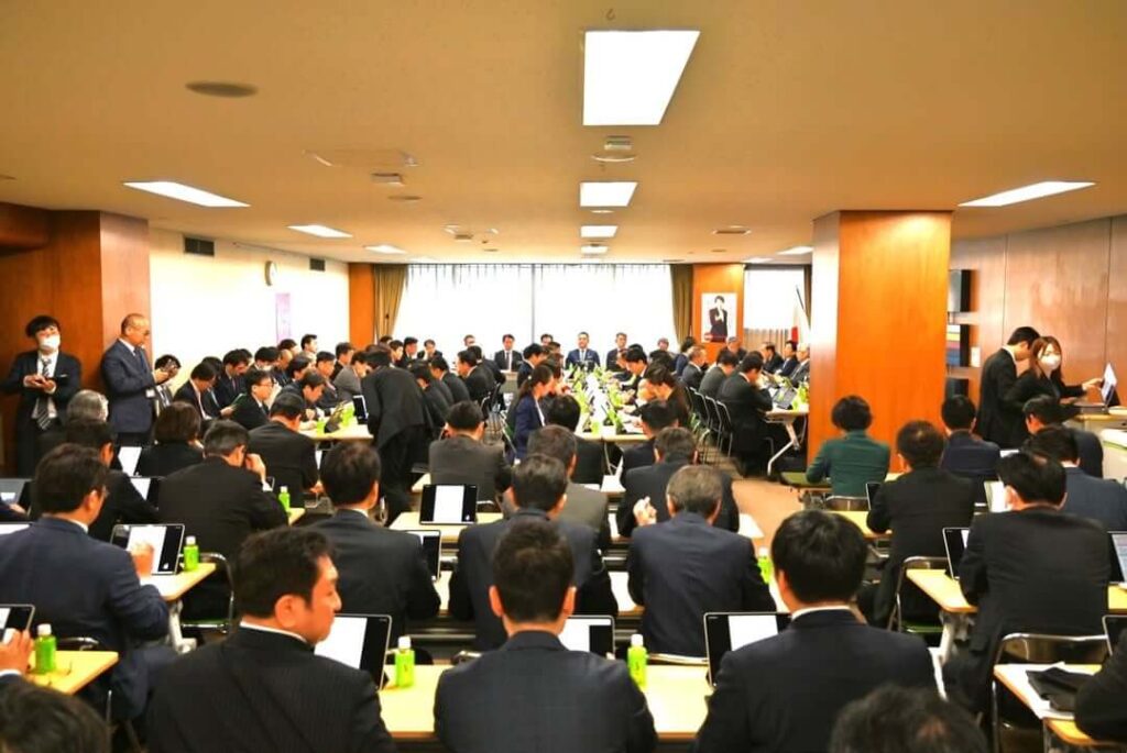 100名超が参加して行われた総務部会等の合同会議では、総務部会長として冒頭挨拶し、議員立法である郵政民営化法改正案について法案審査が行われ、了承されました。今後、党内プロセスを行い、他党との調整を図り、今国会における成立に向けてしっかり取り組んでいきたいと思います。