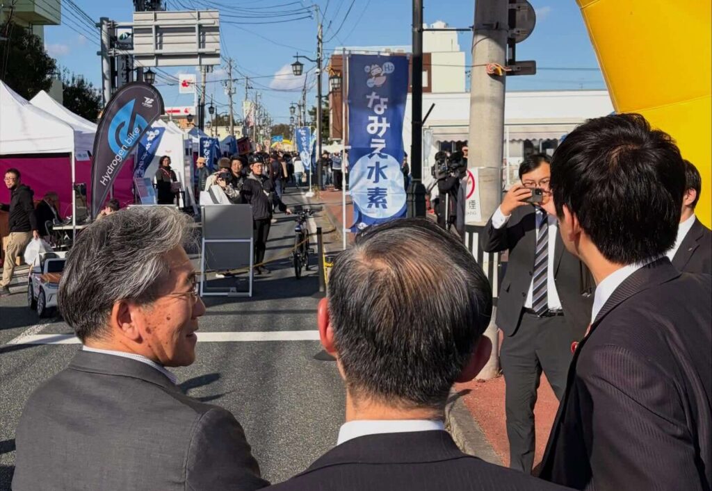 道中、浪江町で、15年ぶり、つまり東日本大震災以来、震災前と同じ場所で開かれた「十日市まつり」も訪問。大変な賑わいで、関係者のご努力により復興に向けて明るい光となりました。更に多くの方がふるさとに戻って来れる環境や新たな産業の創出、なりわいの再生を行うことで、更なる賑わいを創り出していかねばなりません。