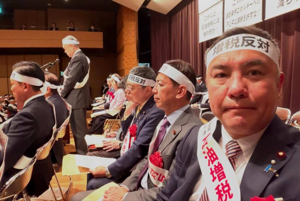 昼には、全石連主催の決起大会に出席。ガソリン税暫定税率廃止において現場でご努力いただくガソリンスタンドの皆様の団体で、ご協力に感謝申し上げる次第です。地域のガソリンスタンドが経営悪化により廃業などにならないよう支援をしっかりしたいと思います。