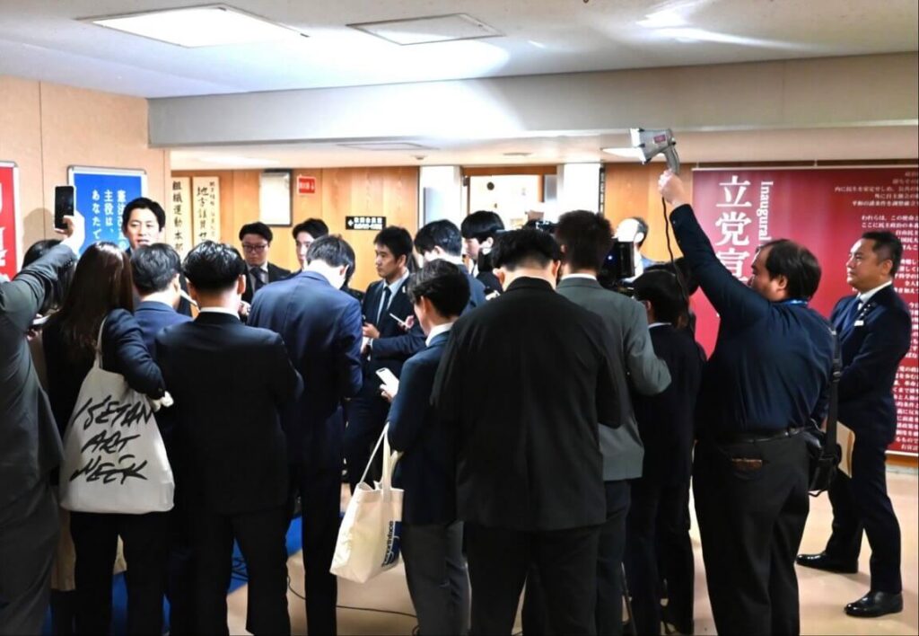 小林政調会長の公明党や国民民主党の政調会長との会談を踏まえた経済対策への追加に関する緊急ぶら下がり記者会見に同席。